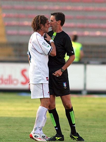 ANDREA MAZZARANI #8 09/10 BIANCA MANICHE LUNGHE CON PERSONALIZZAZIONE COMPLETAMENTE ROSSA,CARATTERI TONDEGGIANTI SENZA CONTORNO BLU. MAGLIA USATA IN MODENA-CROTONE 0-2